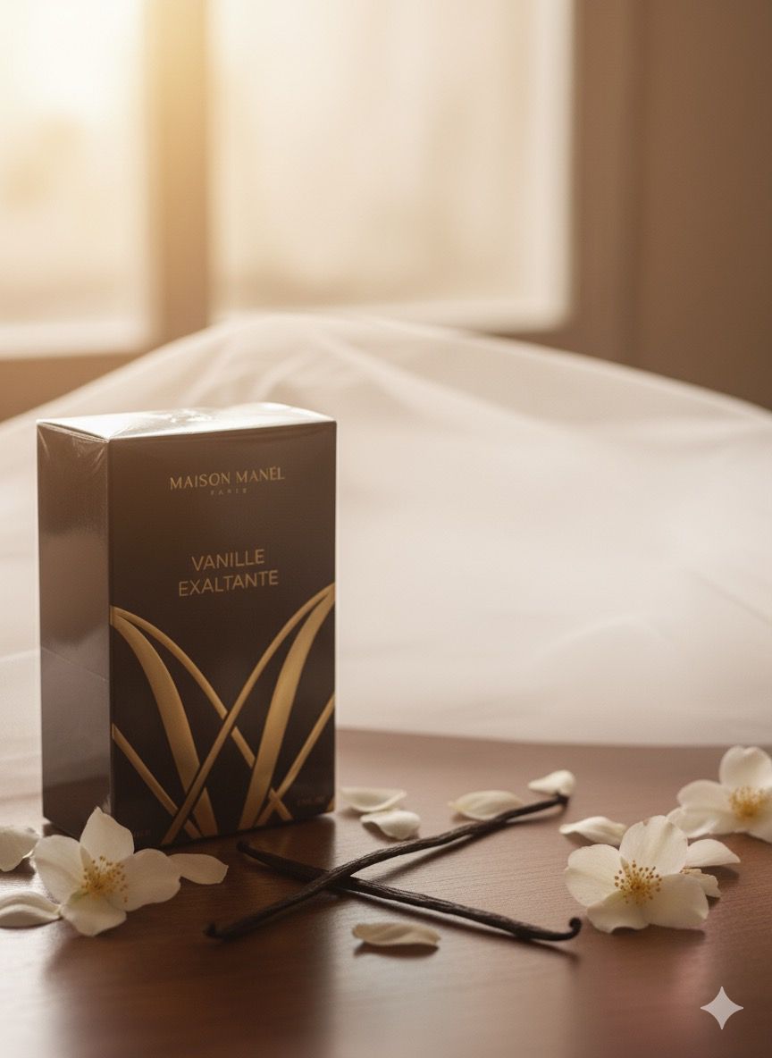 Vanille Exaltante est une étreinte olfactive douce et envoûtante, où la sensualité gourmande de la vanille s’élève en une mélodie délicate. Dès les premières notes, une touche boisée et sucrée installe une chaleur élégante et rassurante. En son cœur, la vanille se dévoile dans toute sa pureté — tendre, lumineuse et infiniment addictive. En fond, des accents ambrés et poudrés prolongent le sillage, laissant sur la peau une trace subtile et précieuse.
